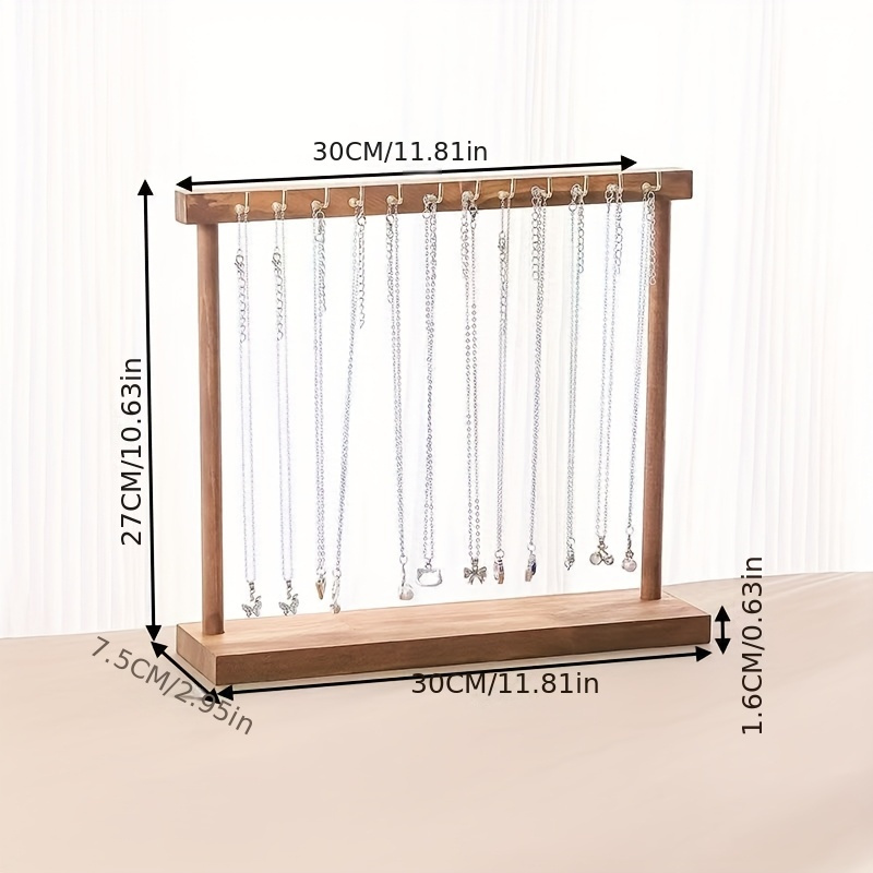 TEMU 오벌 후크가 달린 천연 목재 멀티 훅 목걸이 디스플레이 스탠드 - 홈 데코, 부티크 및 소매점용 러스틱 주얼리 오거나이저 - 견고한 데스크탑 주얼리 랙, 조립 불필요, 간편 디자인, 도구 없이 조립 가능한 주얼리 타워