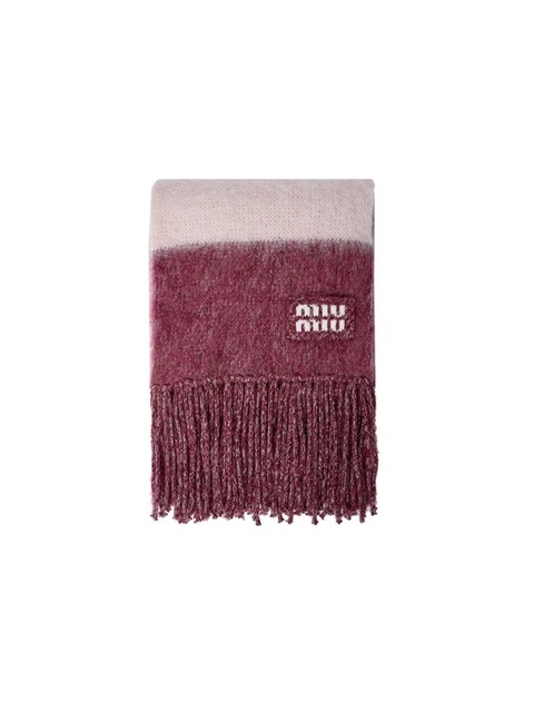 [미우미우] 25FW 로고 패치 스트라이프 모헤어 머플러 아마란스/피치 5FS094 2CVE F04BG