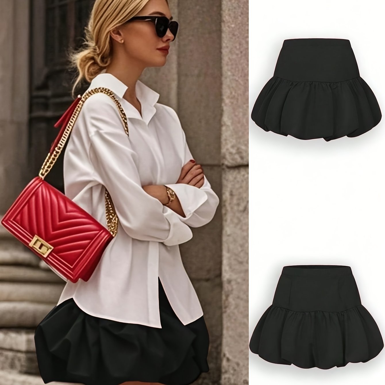 TEMU 여성용 하이웨이스트 미니 스커트 - 신축성 있는 퍼프 슬리브 파티 & , 지퍼 클로저, 플레어 밑단, 올 시즌 포멀 & 캐주얼 스커트