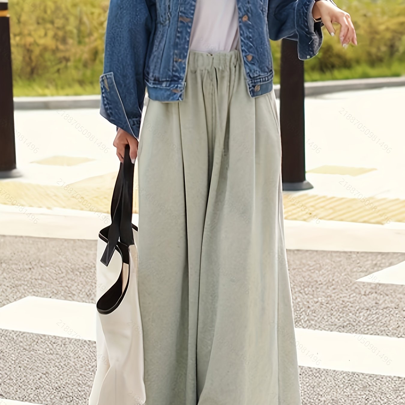 TEMU 시크한 하이웨이스트 와이드레그 팬츠, 오버사이즈 포켓 - 캐주얼, 신축성 없는 폴리에스터, 세탁기 사용 가능 - 단색, 사계절 여성 패션