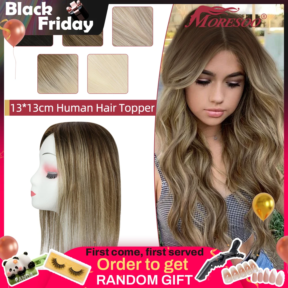 Moresoo 스트레이트 인간의 머리카락 토퍼 기계 레미 헤어 피스 클립 여성용 토퍼 뷰티 핸드 메이드 모노베이스 헤어 내추럴