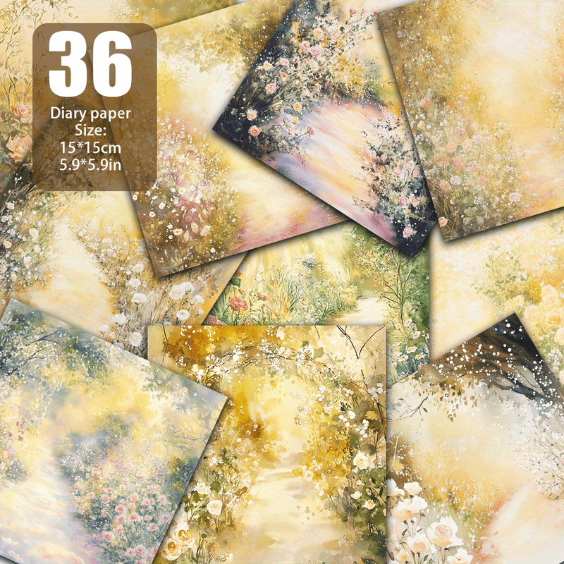 TEMU 햇빛이 비치는 수채화 정원길과 야생 장미, 부드러운 황금 빛에 흔들리는 어린이들의 숨결로 따뜻한 꽃 분위기를 조성하는 아이의 호흡, 원예 일러스트레이션, 배경지, 정원 파티 초대장, 엽서 디자인 등에 적합합니다. 사양: 5.9*5.9인치, 36매