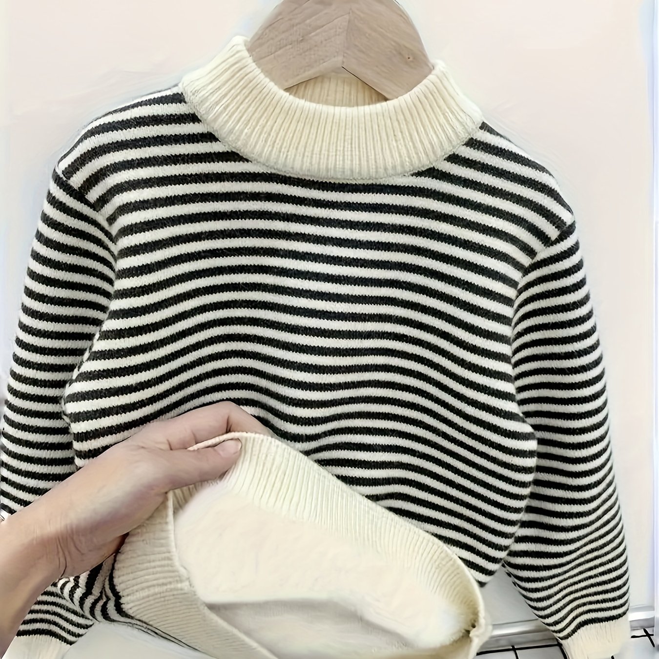 TEMU 소년 니트 풀오버, 아동용 스웨터 남아 여아 패션 가을 겨울 플러시 안감 따뜻한 베이스 탑