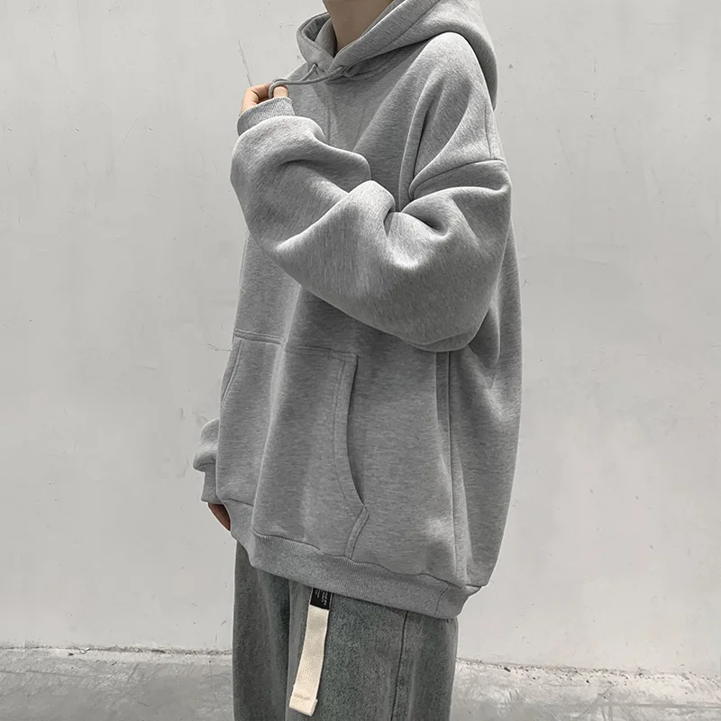 루즈핏 남성용 후드티 순색 캐주얼 스트리트웨어 봄 가을 겨울 그레이 헤비웨이트 후드 재킷 남학생 및 학생용