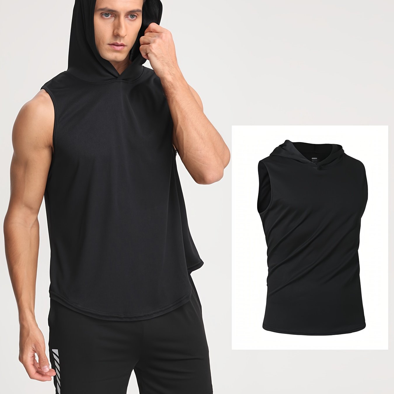 TEMU 남성용 여름 후드 탱크탑, 캐주얼 슬리브리스 조끼, 단색 폴리에스터 100%, 약간의 스트레치가 있는 일반 핏 니트 원단, 180g/m² - 통기성 및 경량