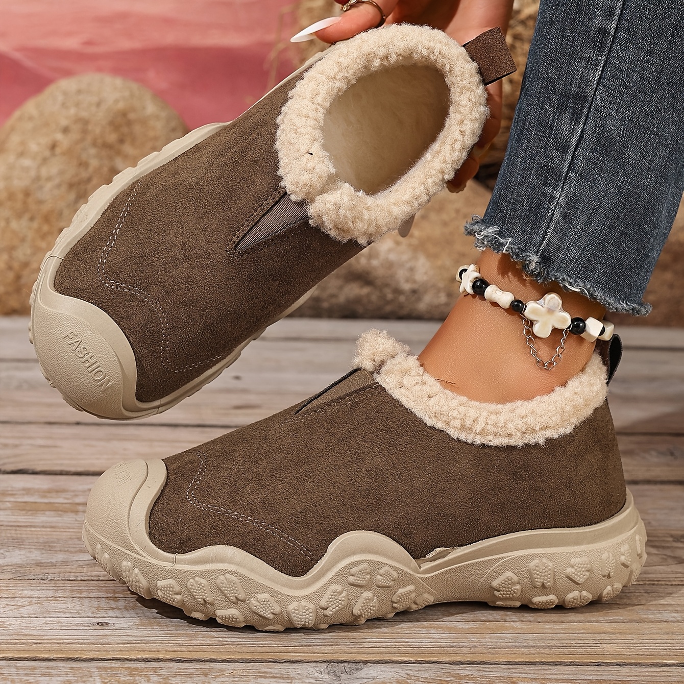 TEMU 여성 발수방한 슬립온 겨울 엄마 털신 미끄럼방지 기모 털 따뜻한 발편한 단화 가볍고 편한 여성신발 여성플랫슈즈 발편한 여성슬립온 여성겨울단화 여성 겨울신발 여성 방한화
