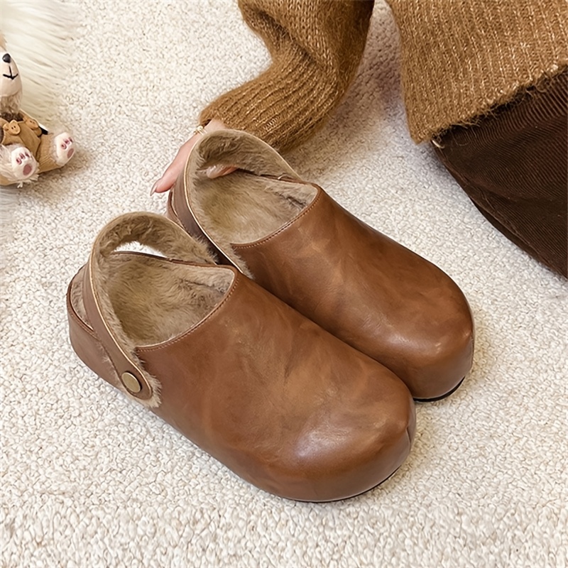 TEMU 여성 캐주얼 플란넬 안감 따뜻하고 편안한 슬립온 아웃도어 | 미끄럼 방지, 플랫폼 힐, 단색, 겨울 시즌, 합성 인조 가죽 갑피