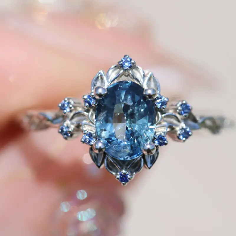 TEMU 아쿠아마린 지르코니아가 장식된 우아한 반지 세트. 생일과 크리스마스에 완벽한 선물입니다.