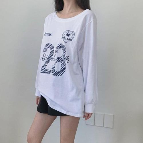 [신상오픈런]|KMT9B04|여성 레터링 면 원오프숄더 루즈핏 긴팔 티셔츠_23359201_597559