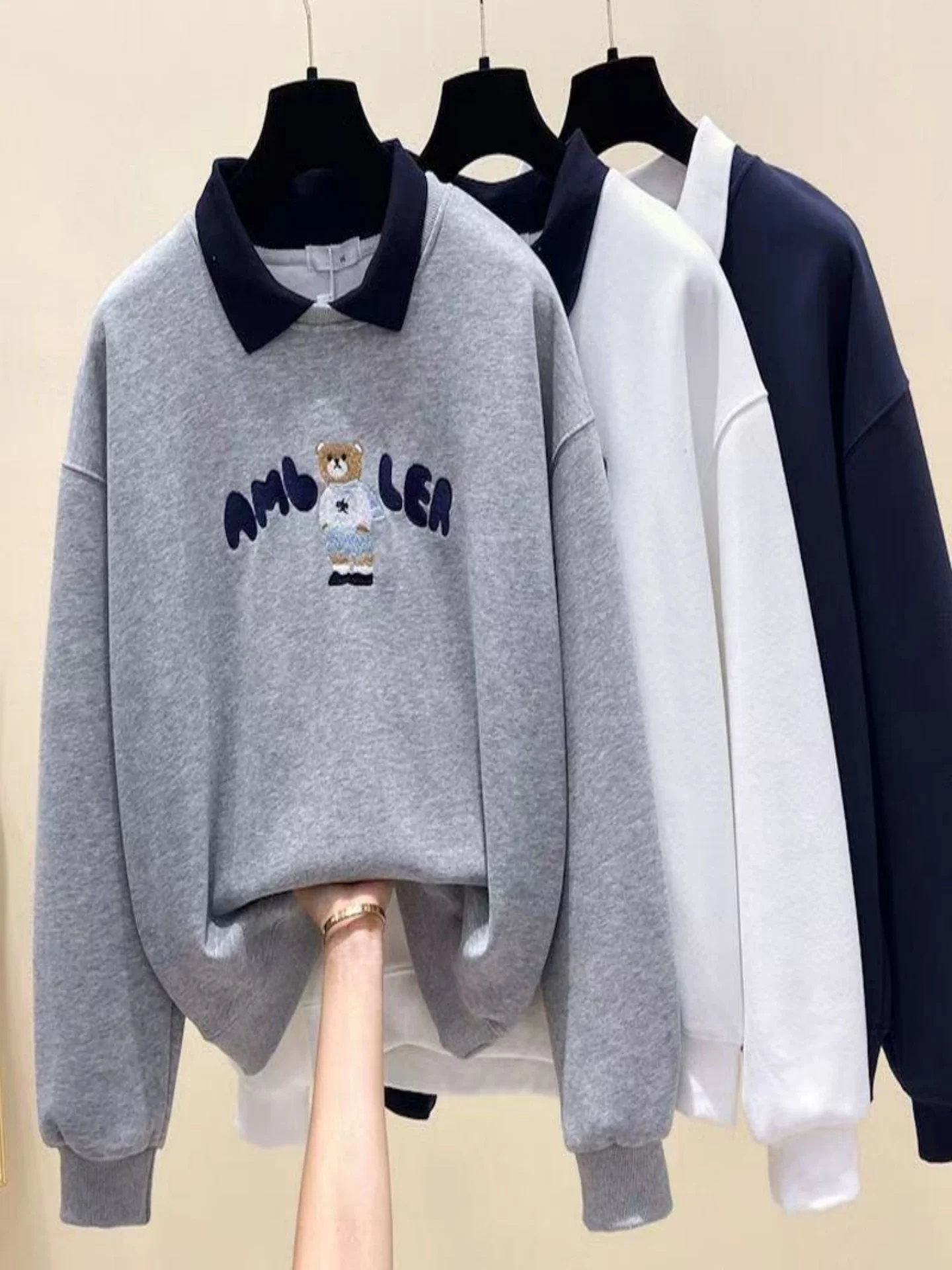 봄 가을 폴로넥 스웨트셔츠 여성용 루즈핏 패셔너블 학생 트렌디 프린트 아우터 한국 스타일 긴팔 캐주얼웨어