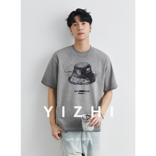 제로투올샵2 / 레트로 모자 프린팅 반팔 티셔츠 그레이