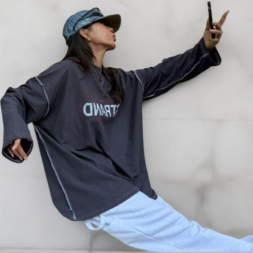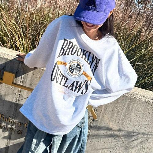 옷자락 / 여성 스트리트 아웃스티치 오버사이즈 프린트 티셔츠
