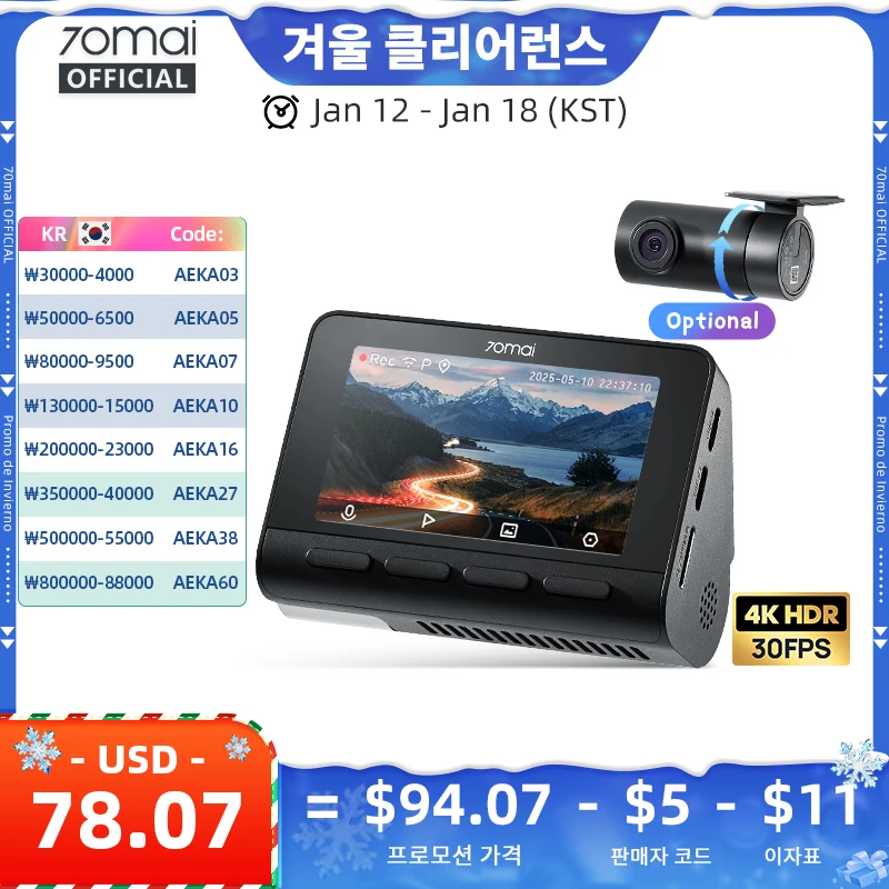 70mai 4K 블랙박스 A800SE 70mai A800S 음성 제어 슈퍼캡타이어 GPS ADAS 차량용 DVR 70mai A800SE UHD Wifi 6 업그레이드 버전