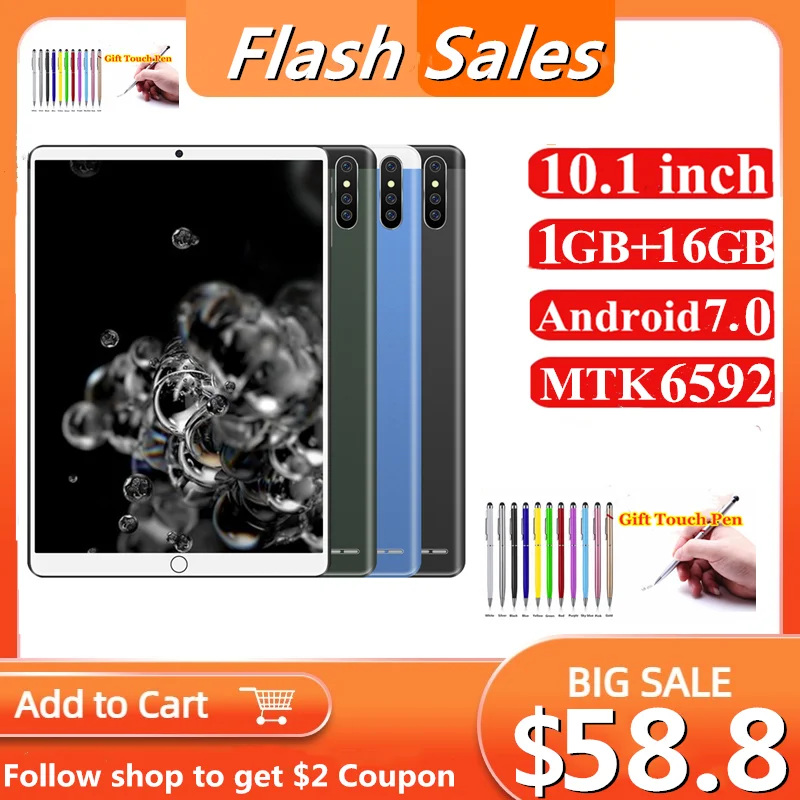 플래시 판매 10 인치 1GB RAM + 16GB ROM 안드로이드 7.0 P20 MTK6592 전화 통화 3G 태블릿 IPS 스크린, 쿼드 코어 WIFI SIM 듀얼 카메라