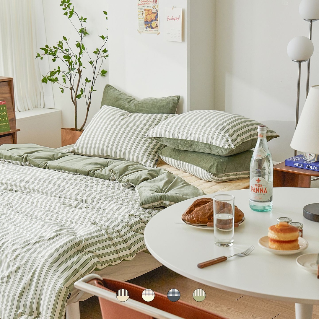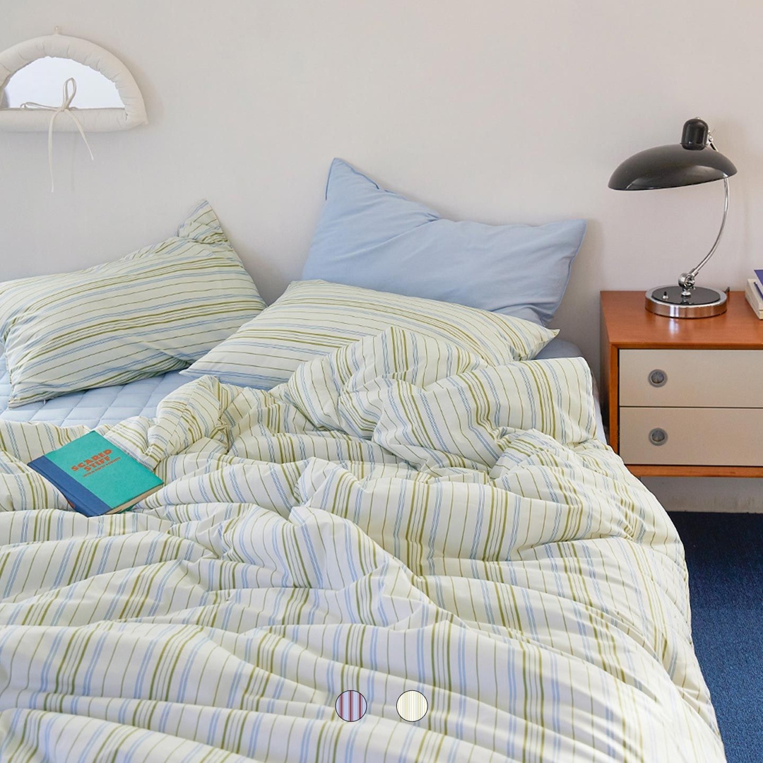 사박사박한 노스텔지아 드림 60수 고밀도 순면 스트라이프 차렵이불 세트 SS/Q 2컬러