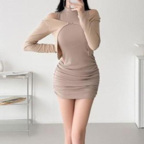 [옷자락]여자 볼레로 레이어드 셔링 슬림핏 나시 미니 원피스