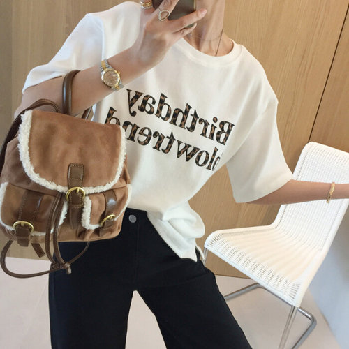 아이미마인 / 벌스 호피 레오파드 레터링 루즈핏 피치기모 겨울 반팔티셔츠 (2color)