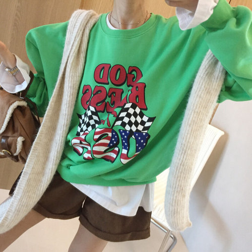 아이미마인 / 아메리카 크랙 빈티지 레터링 프린팅 루즈핏 라운드 기모맨투맨 (3color)