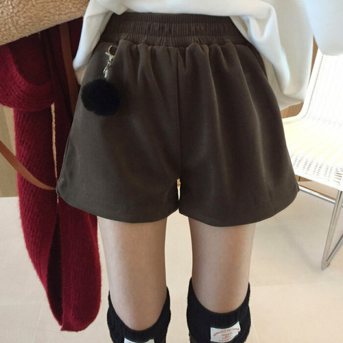 아이미마인 / 퐁퐁 키링 하이웨스트 벨로아 벨벳 겨울 밴딩반바지 (2color)