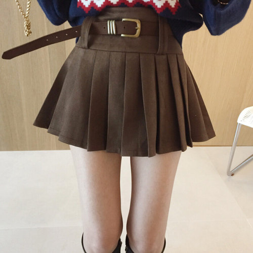 아이미마인 / 시그널 A라인 플레어 벨트세트 페이크 스웨이드 겨울 미니스커트 (2color)