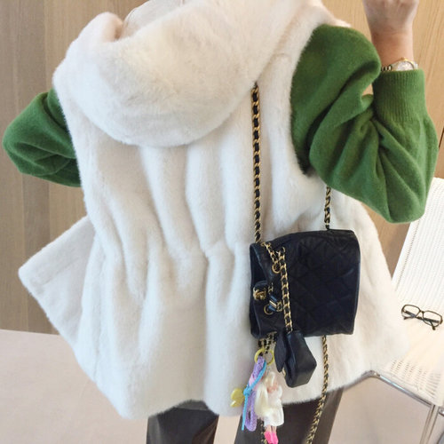 아이미마인 / 루이 허리스트링 루즈핏 페이크 밍크퍼 후드 조끼베스트 (3color)