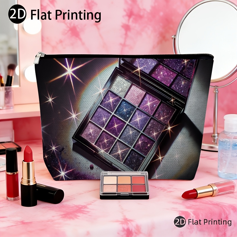 TEMU 1개 여성용 퍼플 스타라이트 아이섀도 메이크업 파우치 - 우아한 휴대용 리넨 화장품 케이스, 지퍼 잠금, 여행용 재사용 가능한 정리함, 여성 생일/크리스마스/새해 선물