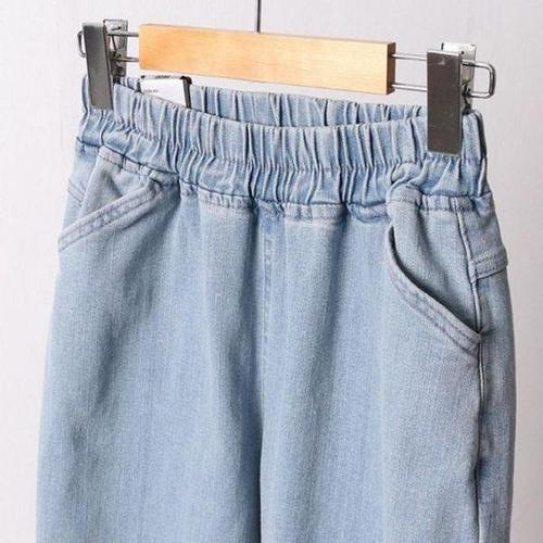 [셀러허브_여성트랜드패션]빈티지 편안한 바지 스타일 허리 청바지 아이스 슬랙스 남성 밴딩 남자 워싱 ..