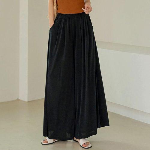 샵앤) 여성 허리밴딩 잔골지 아이스 쿨링 찰랑 와이드 팬츠 PIC-WPT-20647-블랙