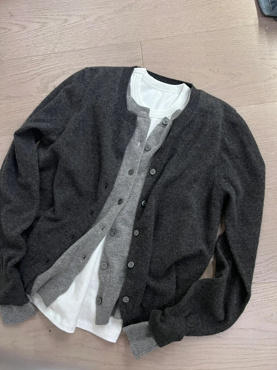 가을패션 여성 라운드넥 간절기 레이어드 니트 가디건 카디건