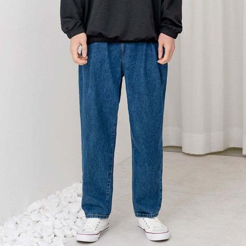 [셀럽하우스]남자 TDOP7137 뒷밴딩 오버핏 중청 핀턱 배기 청바지 데님 팬츠