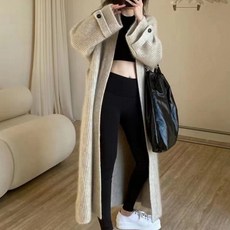 머핀 도톰 루즈핏 숄 울니트 롱가디건 오버핏 고급원사 노카라 가디건