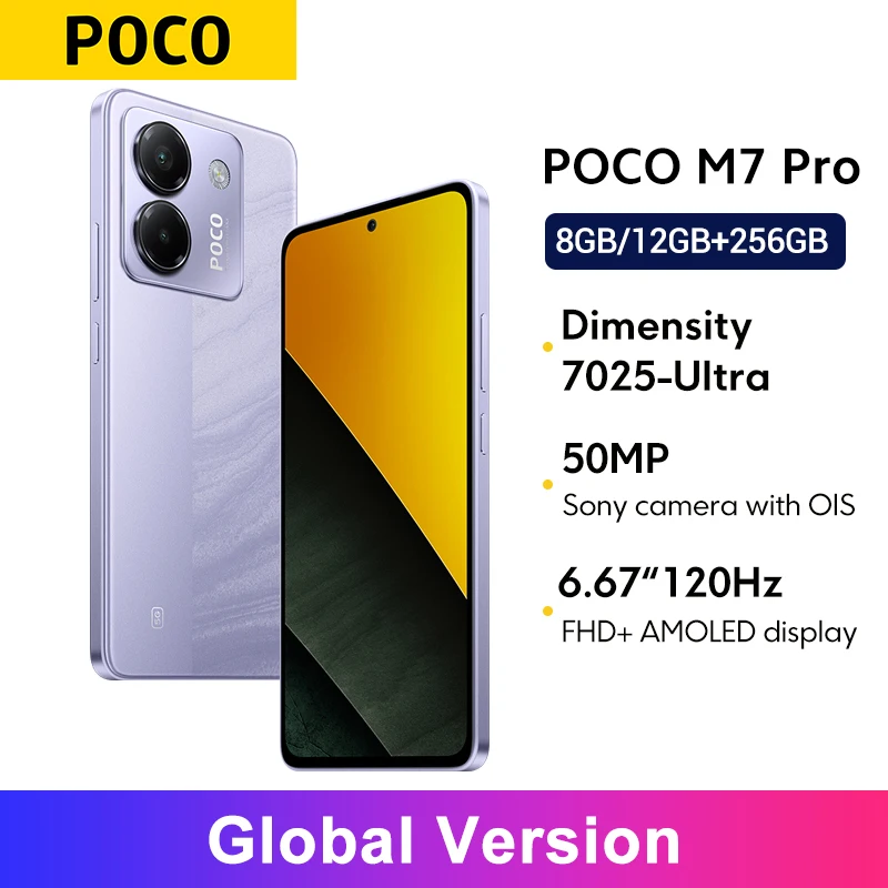 POCO M7 Pro 5G 글로벌 버전 MTK 디멘시티 7025-울트라 120Hz FHD+ 아이케어 AMOLED 디스플레이 50MP 카메라 5110mAh 배터리 NFC