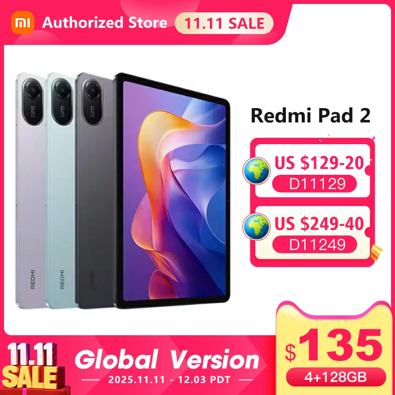 글로벌 버전 샤오미 레드미 패드 2 9000mAh 배터리 MTK Helio G100-Ultra 11인치 디스플레이 고속 충전 90Hz 태블릿 8MP HD 카메라