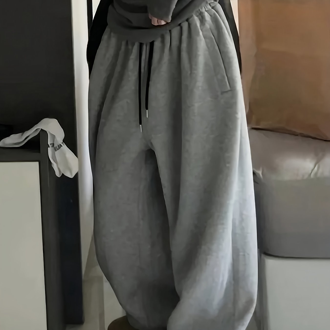 TEMU 플러스 사이즈 - 플러스 사이즈 - 여성 플러스 사이즈 우아한 와이드 레그 트라우저 - 드로스트링 허리, 루즈핏 트라우저, 데일리 & 포멀룩 - 가을/겨울 옷장 필수템, 겨울 의류, 단색 디자인, 스타일리시 하의
