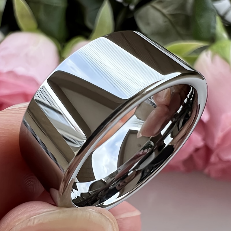 TEMU 세련된 12mm 폭의 은색 도금 컬러 316L 스테인리스 스틸 커플링 - 약혼 및 결혼식에 훌륭한 선택, 발렌타인데이 선물로 완벽