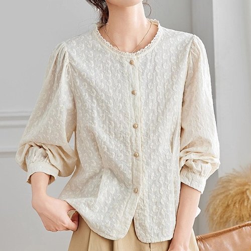 코튼 아일렛 레이스 셔츠 블라우스 (VKBAC7402)
