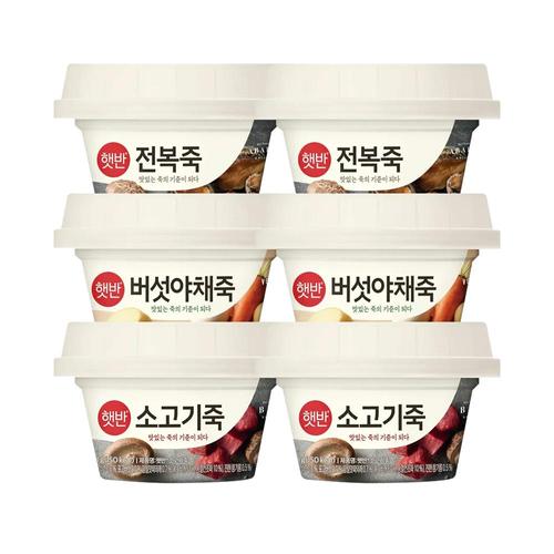 [CJ] 햇반 용기죽 전복죽 x2개+버섯야채죽 x2개+소고기죽 x2개
