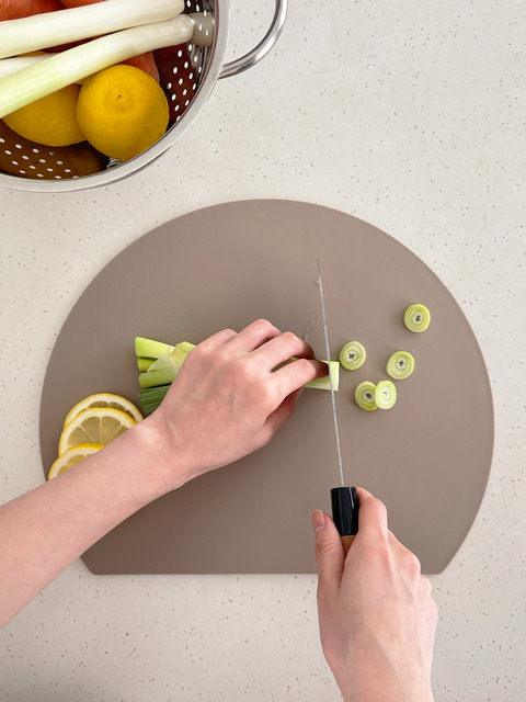 [아카시아] 반달 TPU 도톰한 플레이팅 항균 도마 베이지 2사이즈