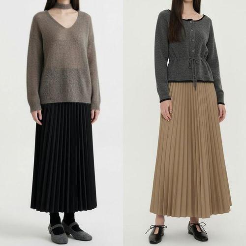 [다잇템]여자 고무줄 롱 아코디언 일상룩 스커트