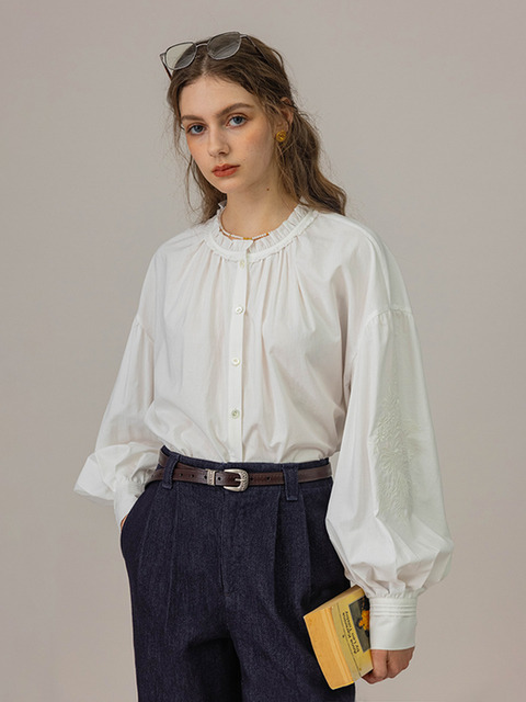 [데일리 아트] DA_Fungus edge round neck blouse_2color