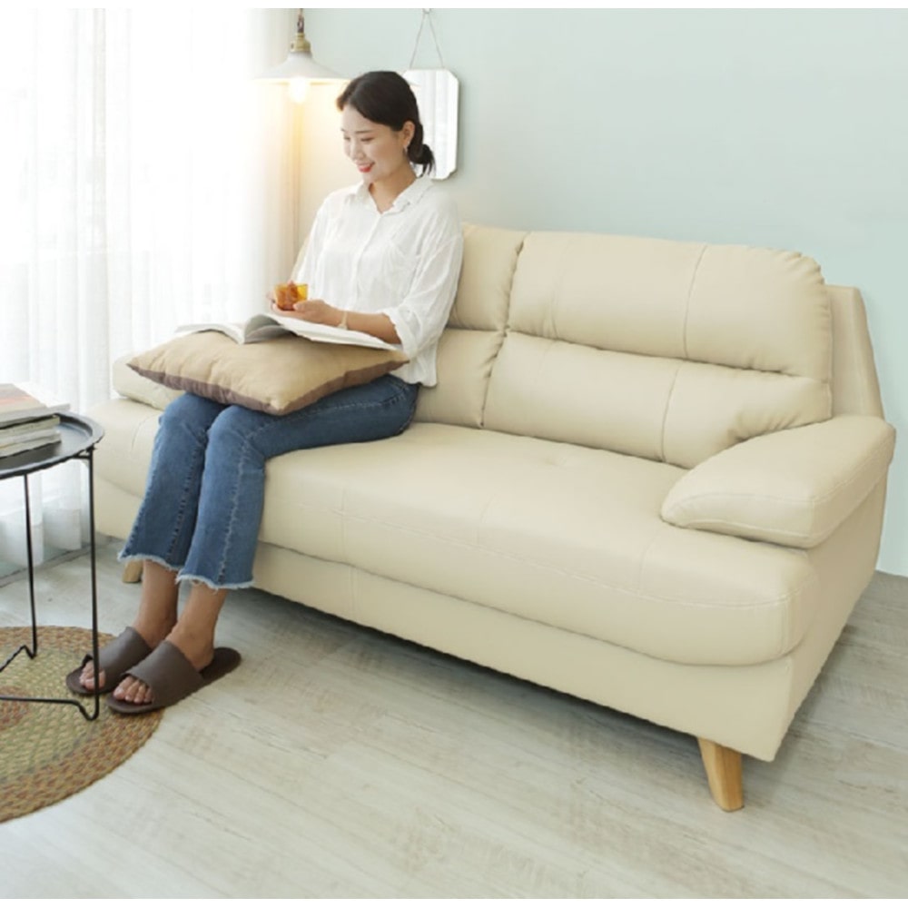 장인가구 두두 비건 실리콘 레더 하이백 3인용 가죽 소파