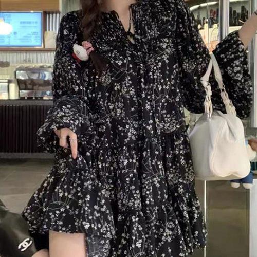 블랙 플라워 여성 캉캉 미니 원피스 데일리 캐주얼룩 WFIXAKP