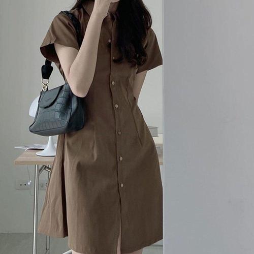 슬림핏 미니 기장 여성 단추 카라 반팔 캐주얼 원피스 WFIXA8O