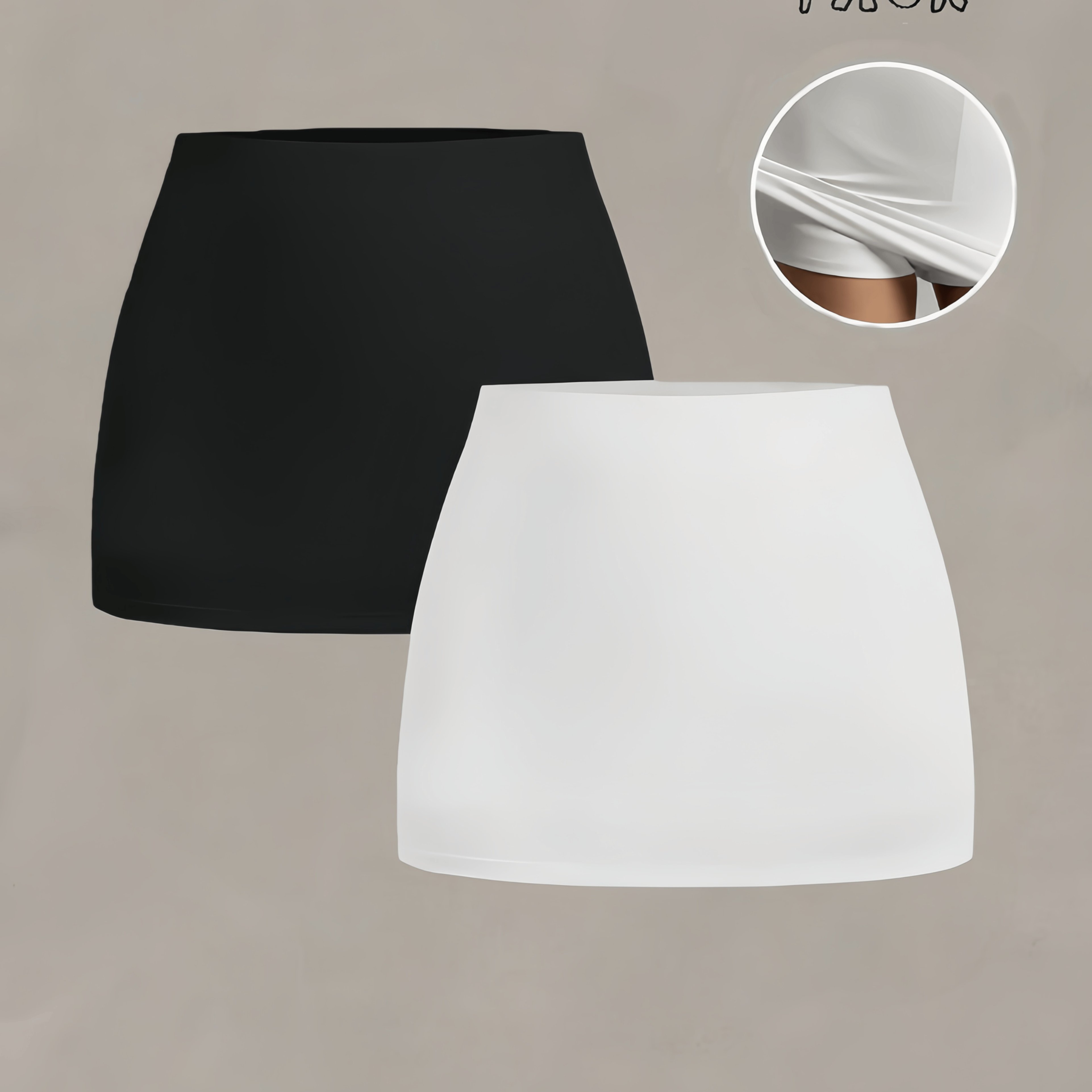TEMU 2개 여성 미니 스커트 (반바지 안감) 블랙/화이트 슬림핏 캐주얼 데일리 웨어 / 높은 신축성 원단 편안하고 편안한 세탁기 사용 가능 신상 봄/여름 스타일