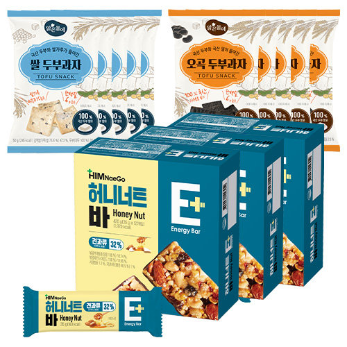 힘내고 허니너트바 3박스 + 맑은물에두부과자 10팩(오곡5팩+쌀5팩)