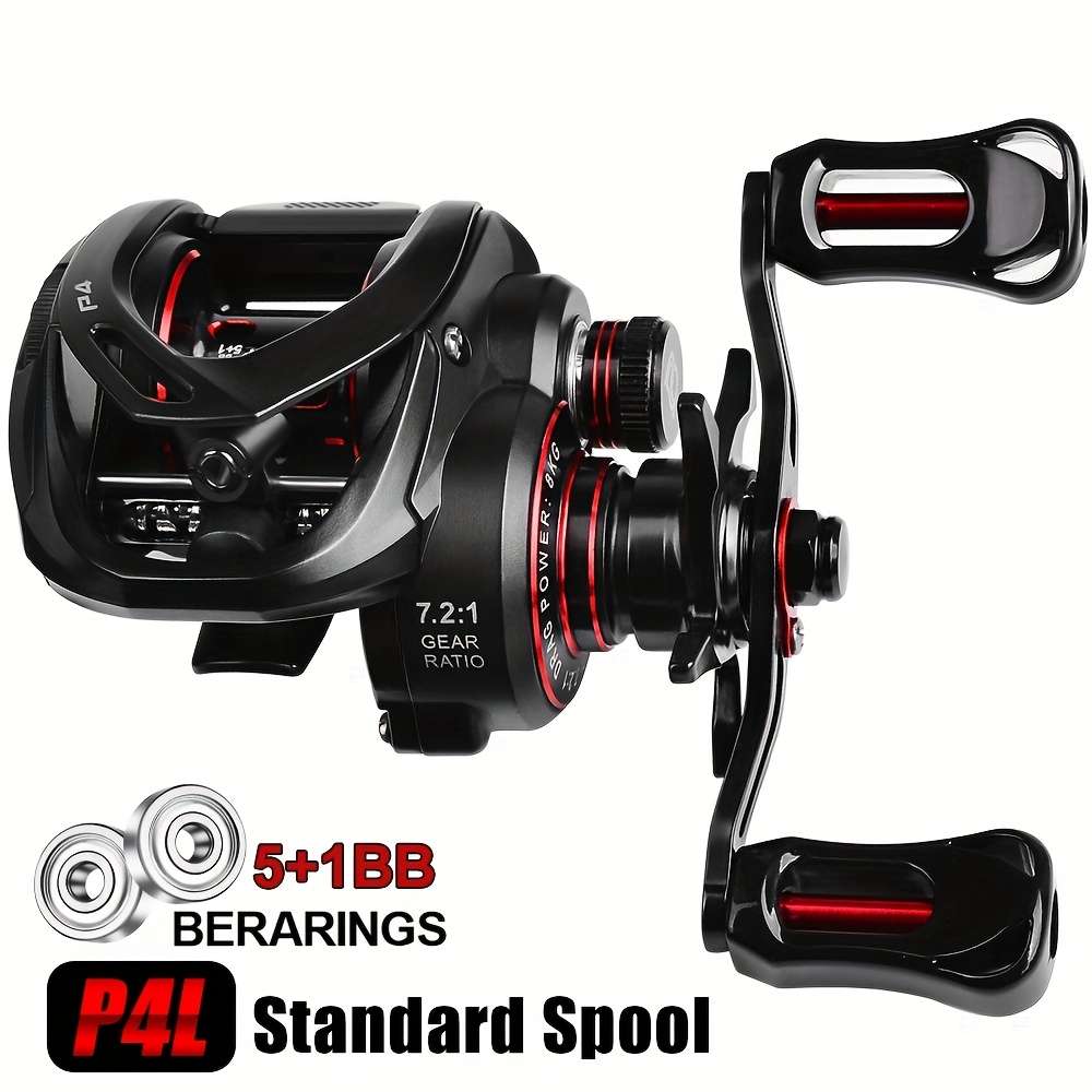 TEMU 헤비듀티 베이트캐스팅 낚시릴, 자기 제동 시스템 & 5+1 BBs - 빠른 회수, 민물/해수용 스풀, 대형 물고기용 - 전문낚시꾼 및 초보자에게 적합, 세련된 알루미늄 디자인, 내구성 있는 알루미늄 합금