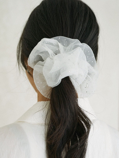 올림머리 여성 스퀘어큐빅 쉬폰 헤어끈 머리끈