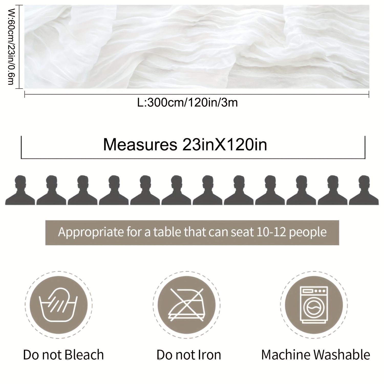 TEMU 10피트 화이트 치즈클로스 테이블 러너 35"" 대형 직사각형 쉬어 가우즈 패브릭 - 보호 러스틱 웨딩, 다이닝, 크리스마스 & 파티 장식 - 테이블용 우아한 드레이핑 천 (쉬운 세척, 프린지 스타일)