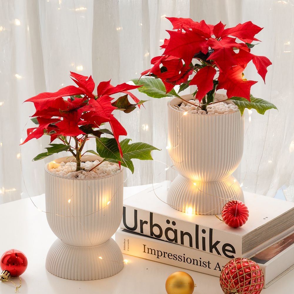 포인세티아_ 오브제 고블렛형 화분 세트_ 크리스마스 장식 식물(사은품 전구 증정)