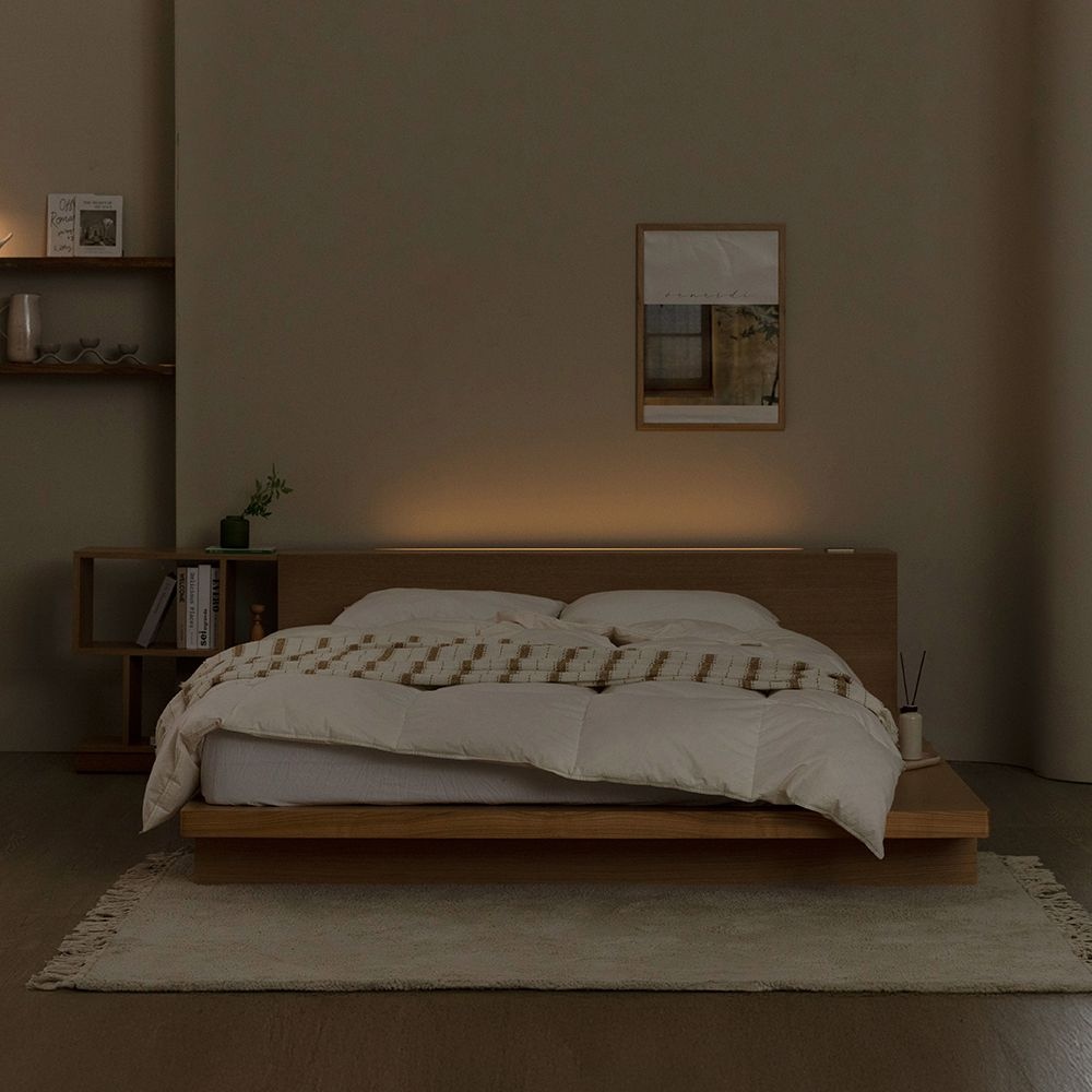 [오늘의딜]알마 LED 조명 낮은헤드 저상 호텔 침대 프레임 내추럴&월넛 SS/Q&K/LK